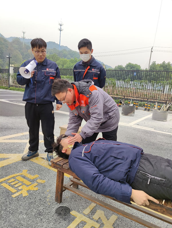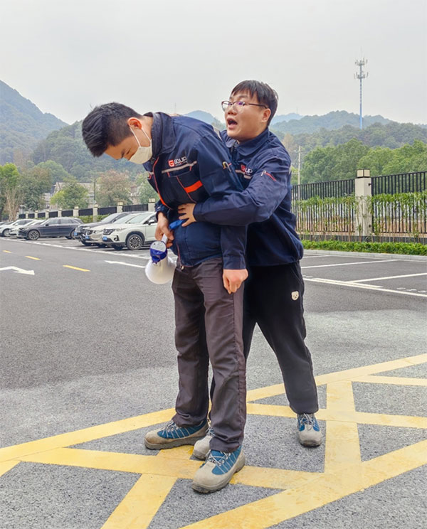 滅火器使用完畢后,安全員組織現(xiàn)場教學海姆立克急救法和胸外按壓、人工呼吸急救法。通過現(xiàn)場指導(dǎo)、錯誤示范、正確示范等多種方式相結(jié)合的手法,使抽象的平安演練變成具體的實戰(zhàn)演習,大大增強了全體員工的平安意識和自護自救技能。