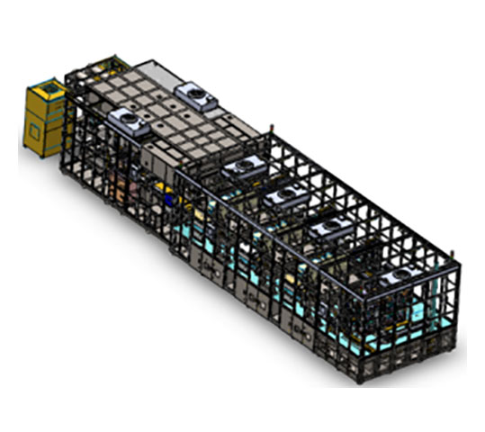 切疊一體機(jī),主要用于完成將極耳已成型的正/負(fù)極卷料自動(dòng)放卷、自動(dòng)糾偏、張力控制、CCD缺陷檢測(cè)、驅(qū)動(dòng)、V/R角沖切、裁斷、除鐵除塵、CCD尺寸檢測(cè)、NG剔除、真空皮帶輸送、CCD預(yù)定位、隔膜放卷、疊片臺(tái)按設(shè)定層數(shù)疊成電芯,同時(shí)可進(jìn)行overhang檢測(cè),隔膜裁斷后貼側(cè)膠、熱壓、貼二維碼膠、外觀檢測(cè)、緩存及下料測(cè)等功能。最終電芯裝載在托盤中,可對(duì)接自動(dòng)物流線和MES系統(tǒng)等。